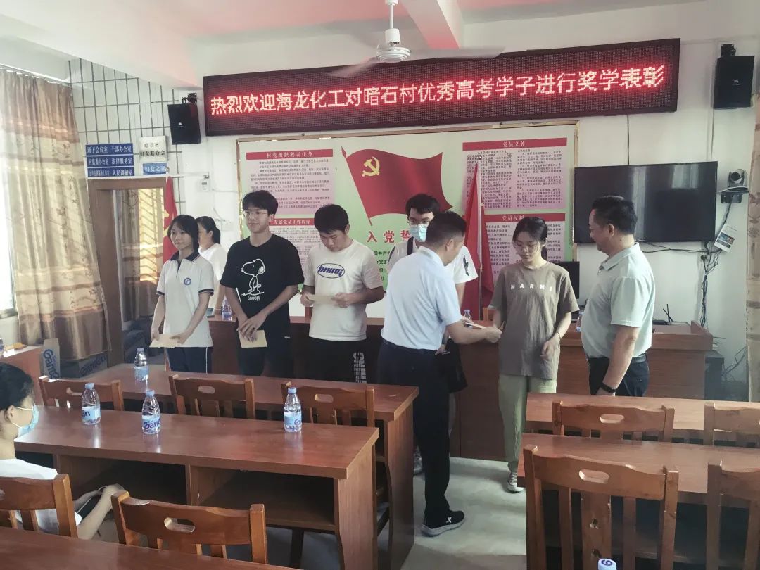 暗石村黨總支部書記丘書記向獲獎學(xué)子表示祝賀,同時,高度肯定了海龍化工公司心系教育、造福桑梓的善行義舉,對海工化工多年來在助力鄉(xiāng)村振興、圓夢學(xué)子、幫扶救助等方面的積極貢獻(xiàn)表示了衷心的感謝。