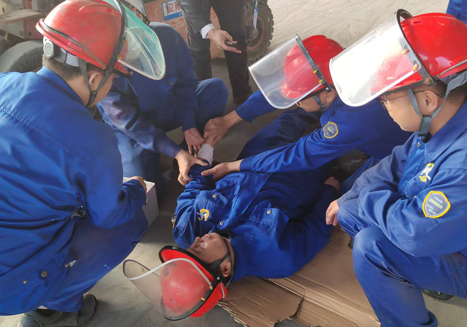 叉車司機(jī)王根立即停止作業(yè),并大喊:“撞人了,撞人了”,周邊同事聽到后,迅速過(guò)來(lái)幫助受傷人員躺平,并上報(bào)車間主任,車間主任接報(bào)后,立即組織救援人員趕赴現(xiàn)場(chǎng),查看受傷人員傷勢(shì)情況,查看到傷勢(shì)比較嚴(yán)重,立即組織人員進(jìn)行簡(jiǎn)單包扎處理,簡(jiǎn)單處理后,使用擔(dān)架抬傷員到公司車輛并送到醫(yī)院就診。