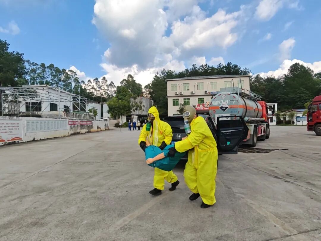 為進一步提高員工安全意識,檢驗公司生產(chǎn)安全事故應(yīng)急預(yù)案體系的科學(xué)性、銜接性和可操作性,增強對氨水泄漏事故專項應(yīng)急處置能力,確保事故發(fā)生后能夠及時、高效、有序地進行應(yīng)急處置工作,2025年10月16日下午,海龍化工及海龍運輸公司在文福化工廠區(qū)組織開展了相關(guān)應(yīng)急演練活動,公司董事長賴仕海先生出席了此次活動。